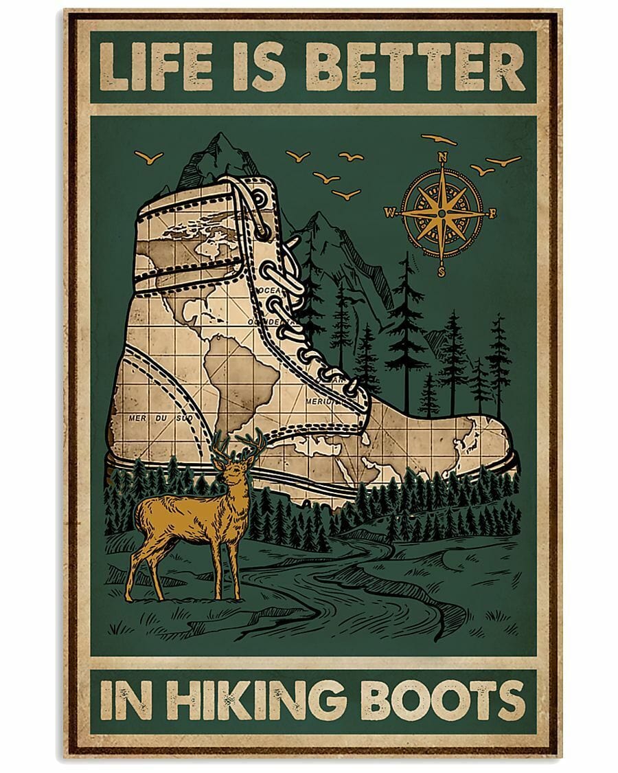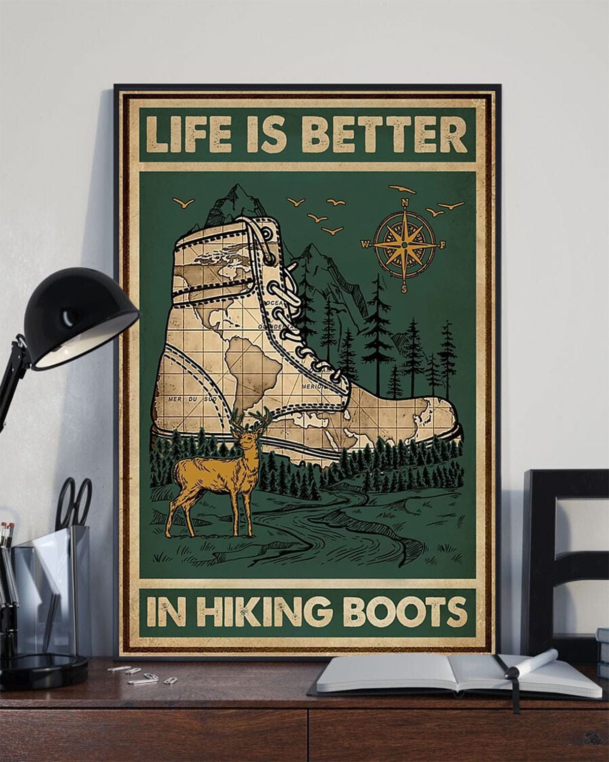 Retro Green Life Is Better In Hiking Boots Poster, Canvas