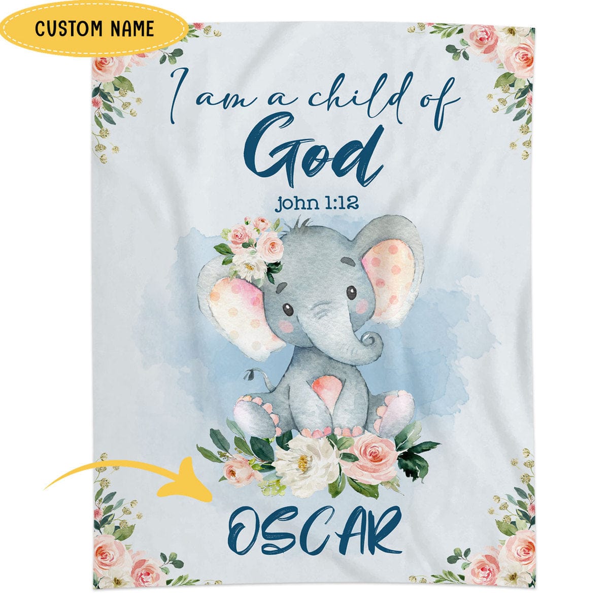 I Am A Child Of God Personalized Elephant Fleece & Sherpa Blanket