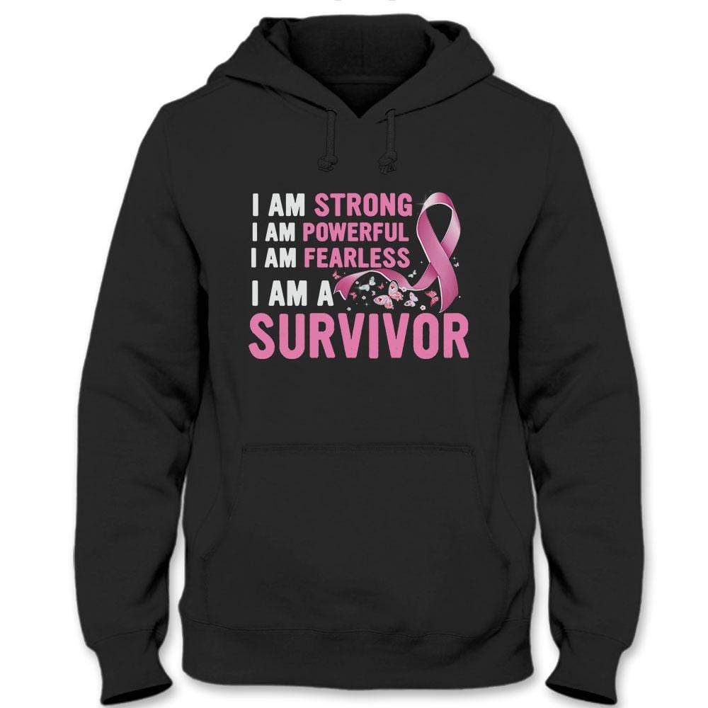 I Am Strong I Am Powerful I Am Survivor, Pink Ribbon Breast Cancer Hoodie, Shirt
