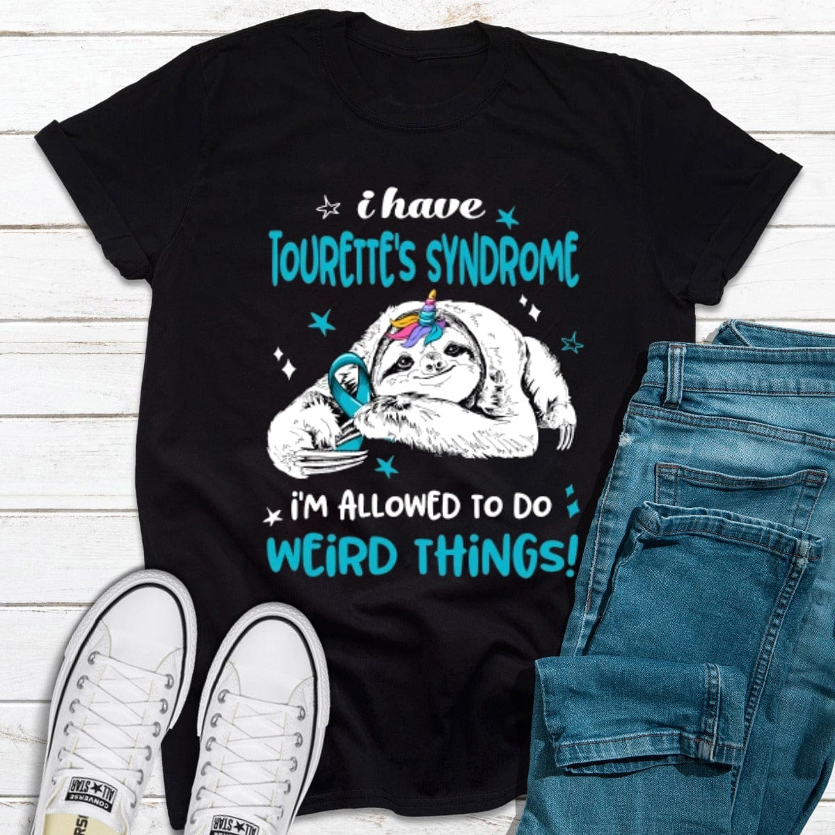 I Have Tourette's Syndrome I'm Allowed To Do Weird Things Tourette's Syndrome Warrior Sloth Blue Ribbon Shirt
