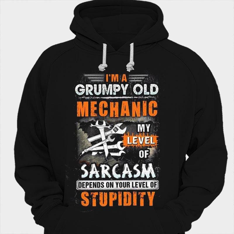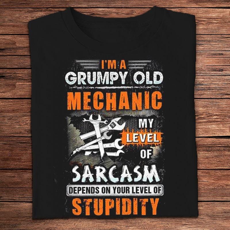 I’m A Grumpy Old Mechanic My Level Of Sarcasm Depends On Your Level Of Stupidity Shirts