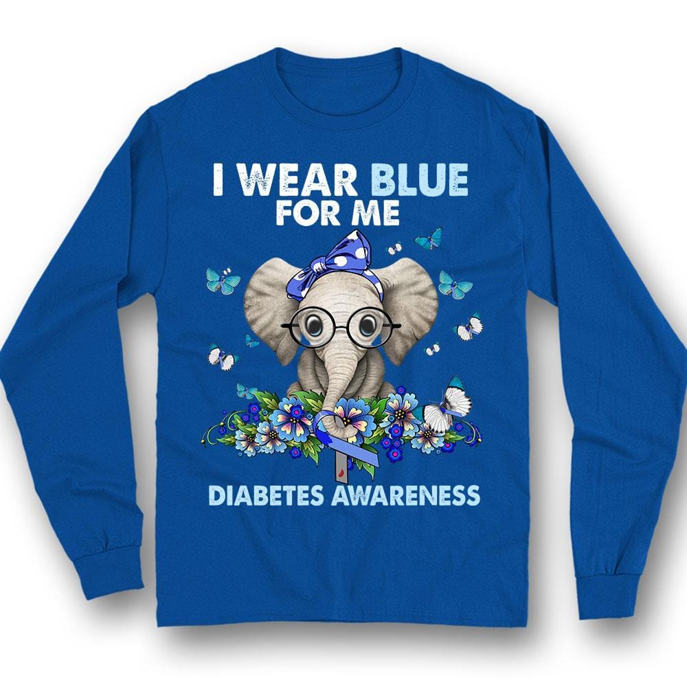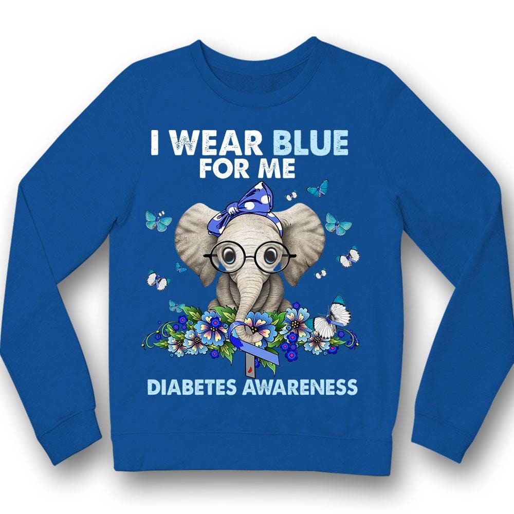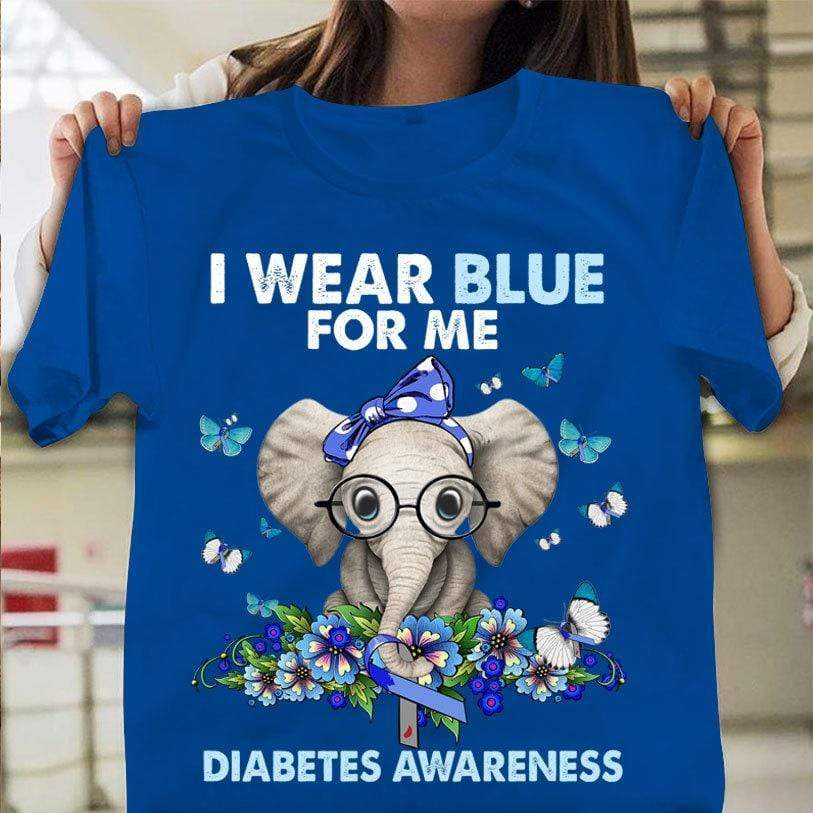 Diabetes Shirts, I Wear Blue For Me With Elephant