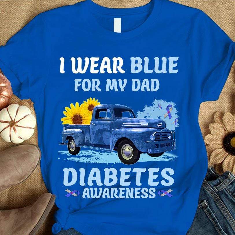 Diabetes Awareness Shirts, I Wear Blue For My Dad, Ribbon Sunflower Car
