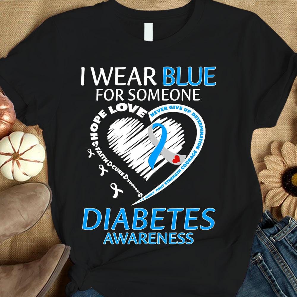 I Wear Blue For Someone, Ribbon Heart, Diabetes Awareness Support Warrior Shirt