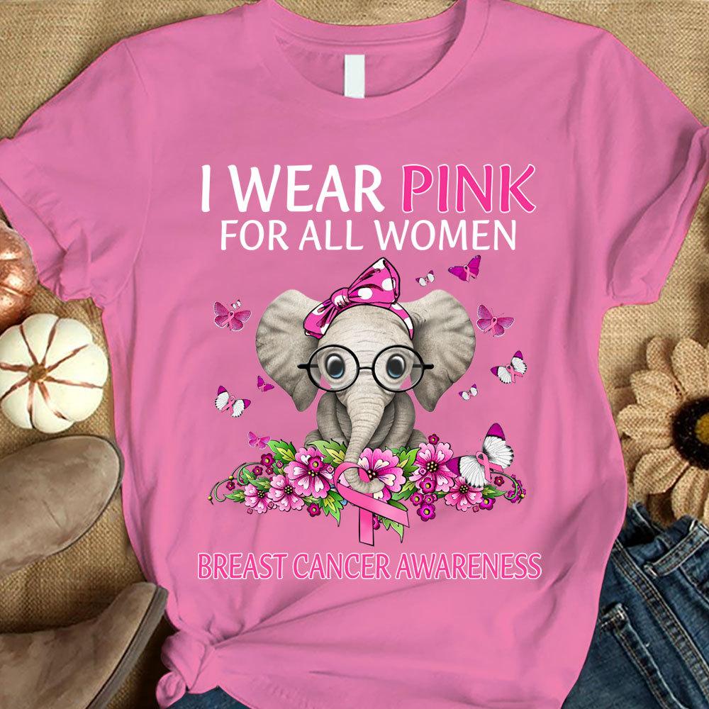 I Wear Pink For All Women, Ribbon Elephant, Breast Cancer Survivor Awareness Shirt