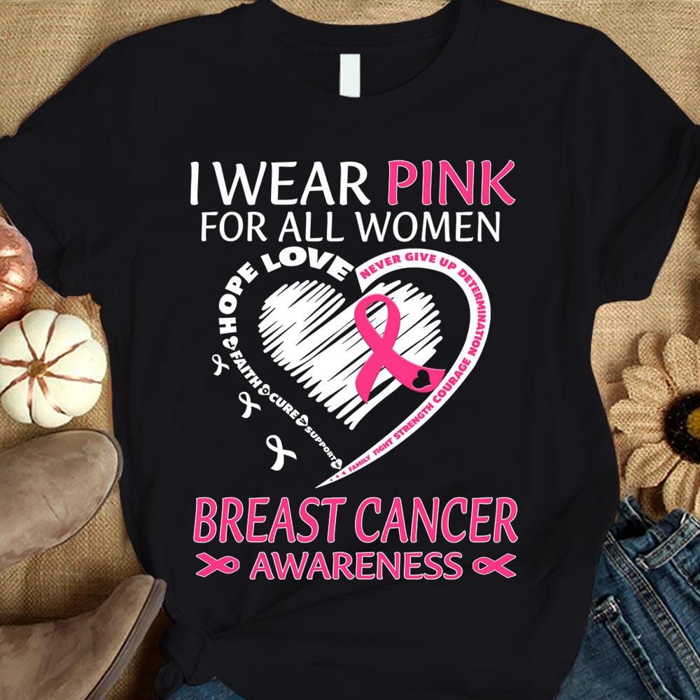 I Wear Pink For All Women, Ribbon Heart, Breast Cancer Survivor Awareness Shirt