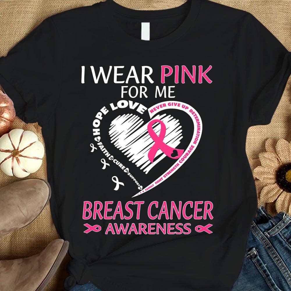 I Wear Pink For Me, Ribbon Heart, Breast Cancer Survivor Awareness Shirt