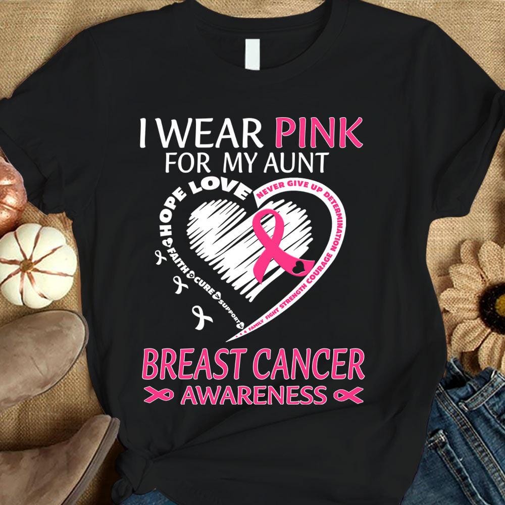 I Wear Pink For My Aunt, Ribbon Heart, Breast Cancer Survivor Awareness Shirt