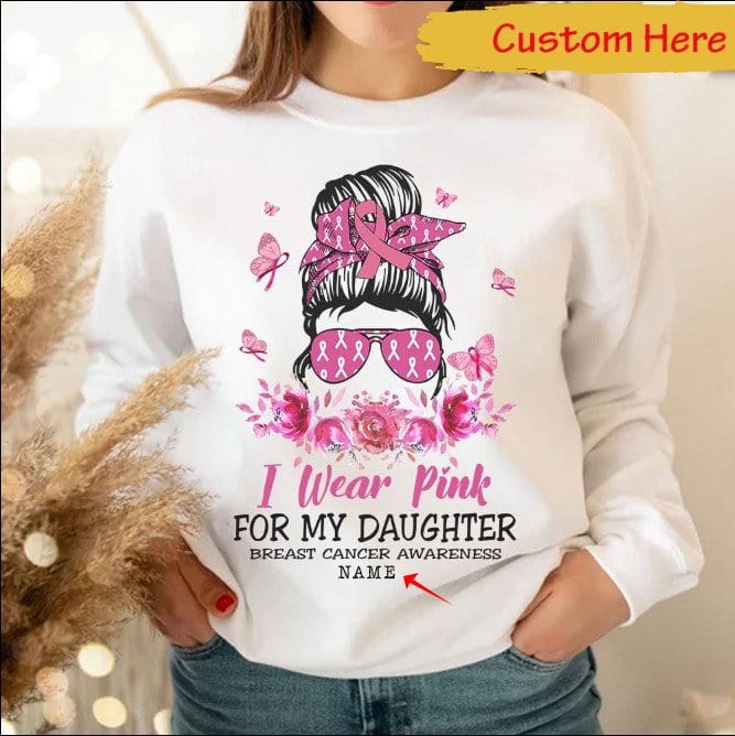 I Wear Pink For My Daughter, Personalized Breast Cancer Shirts
