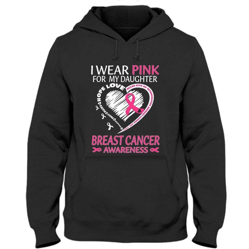 I Wear Pink For My Daughter, Ribbon Heart Breast Cancer Hoodie, Shirt