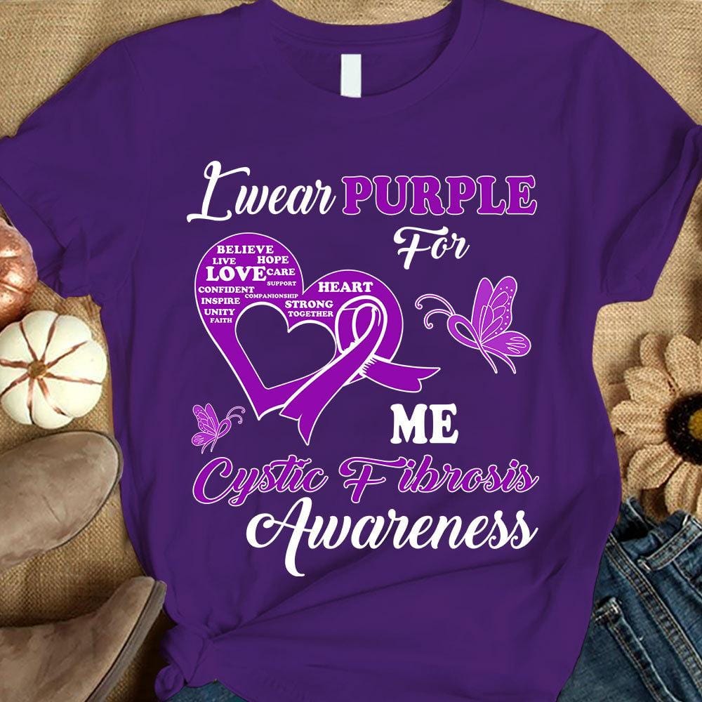 I Wear Purple For Me, Cystic Fibrosis Awareness Support Shirt, Ribbon Butterfly