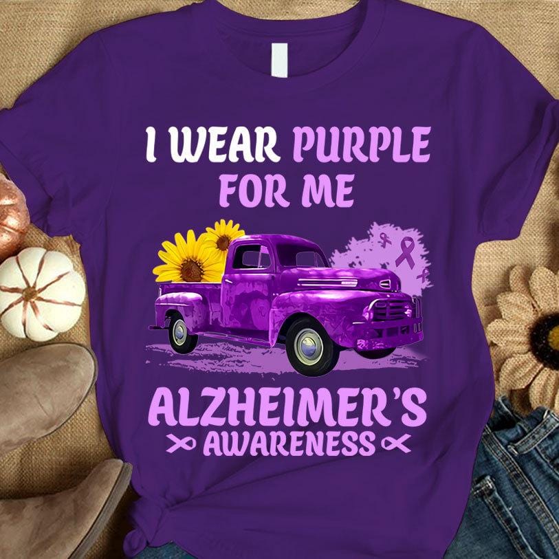 I Wear Purple For Me, Ribbon Sunflower Car, Alzheimer's Awareness Shirt