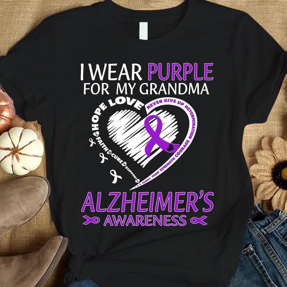 I Wear Purple For Grandma, Ribbon Heart, Alzheimer's Awareness Shirt