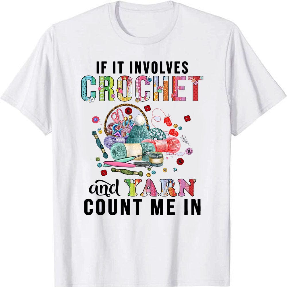 If It Involves Crochet And Yarn Count Me In Funny Crocheting Knitting Shirts