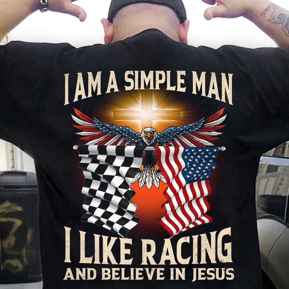 I'm A Simple Man I Like Racing And Believe In Jesus Shirts