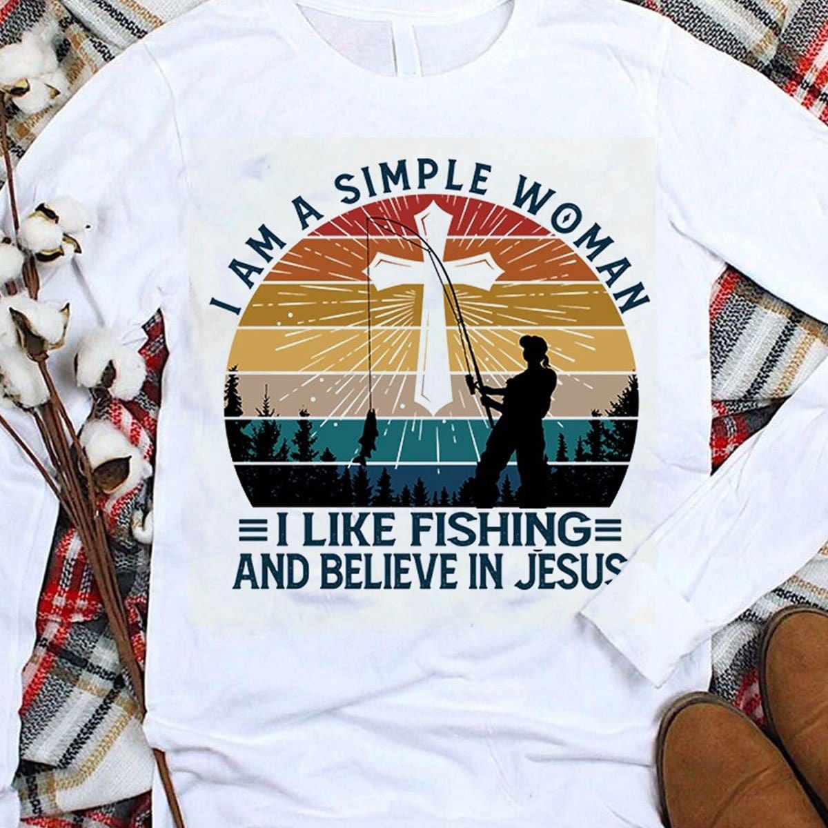 I'm A Simple Woman I Like Fishing And Believe In Jesus Shirts