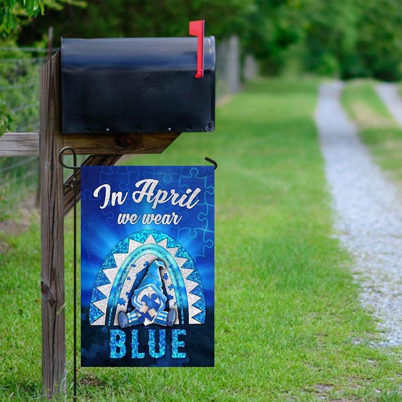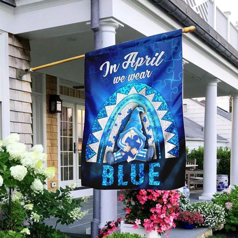 In April We Wear Blue, Rainbow Gnome, Autism Awareness Flag, House & Garden Flag
