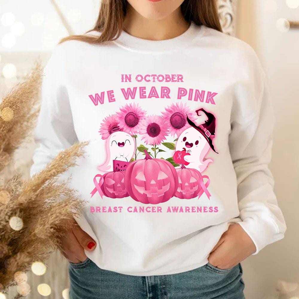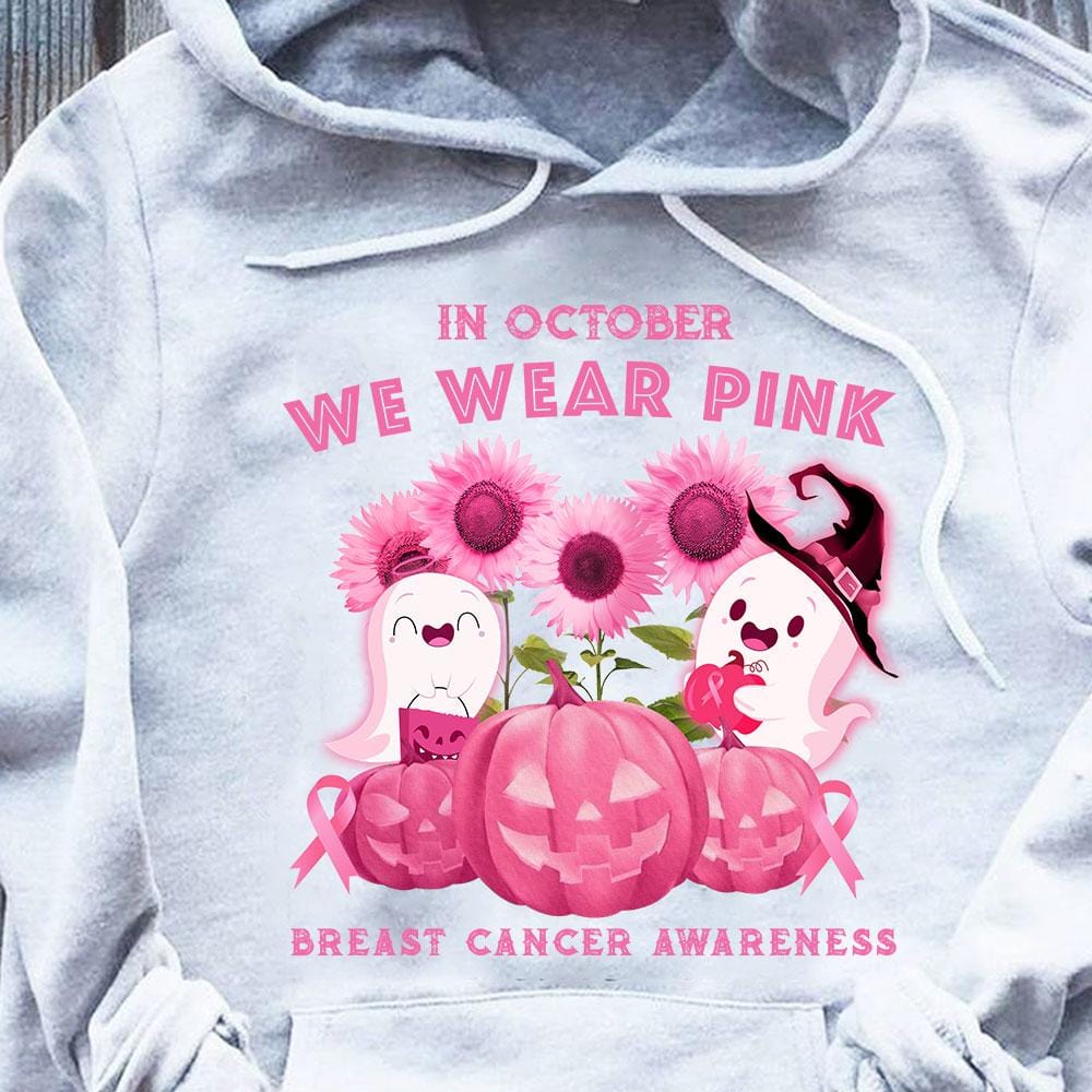 In October We Wear Pink, Halloween Breast Cancer Hoodie, Shirt