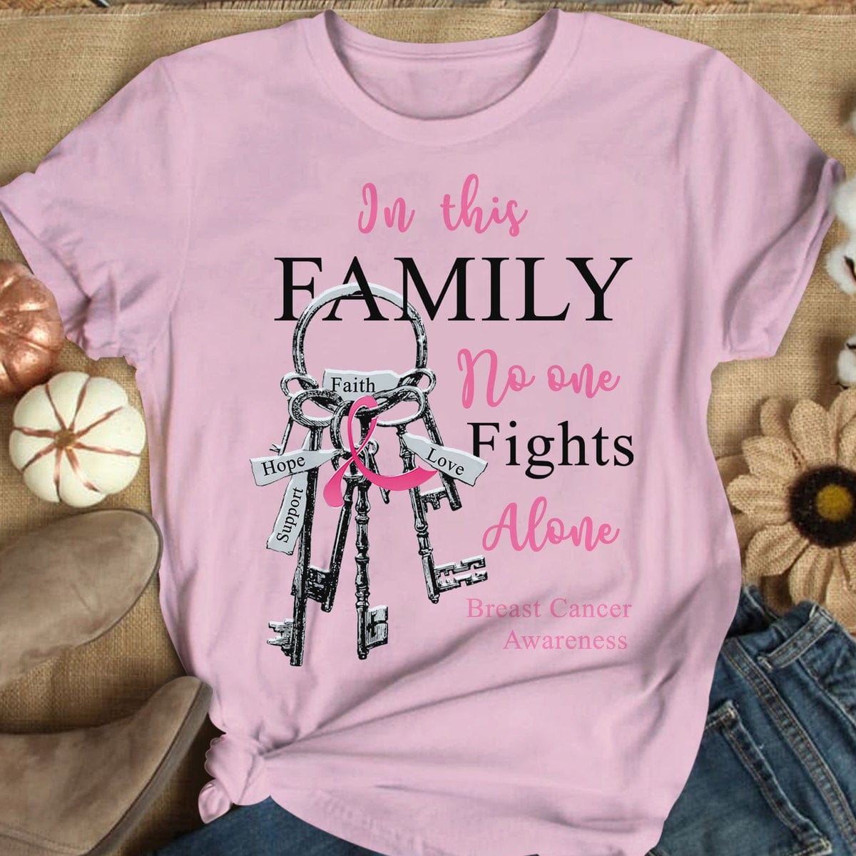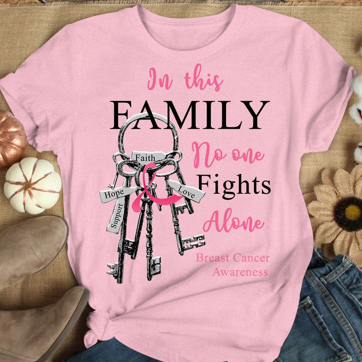 In This Family No One Fights Alone With Key, Breast Cancer Awareness Shirts