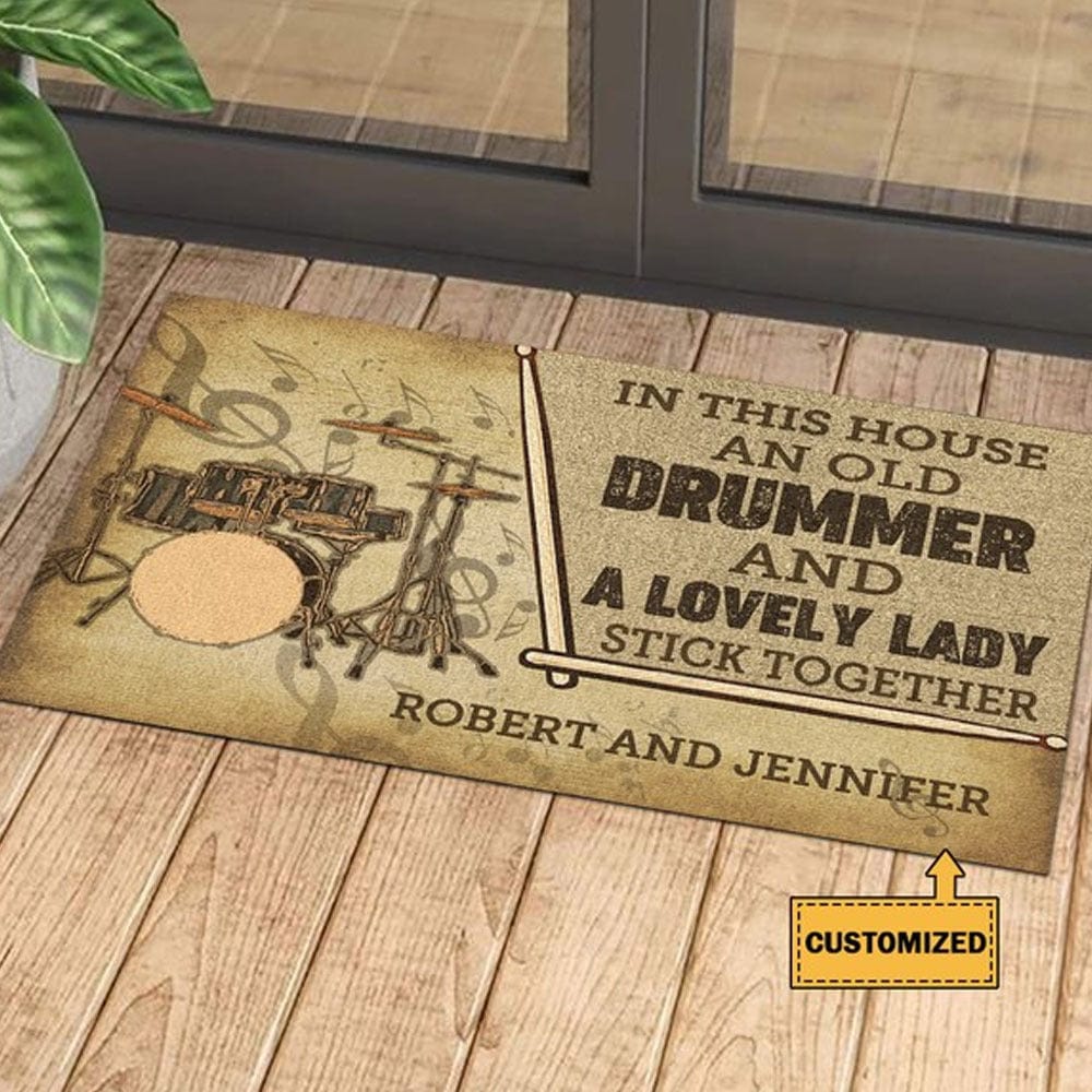 In This House An Old Drummer & A Lovely Lady Stick Together Personalized Doormat