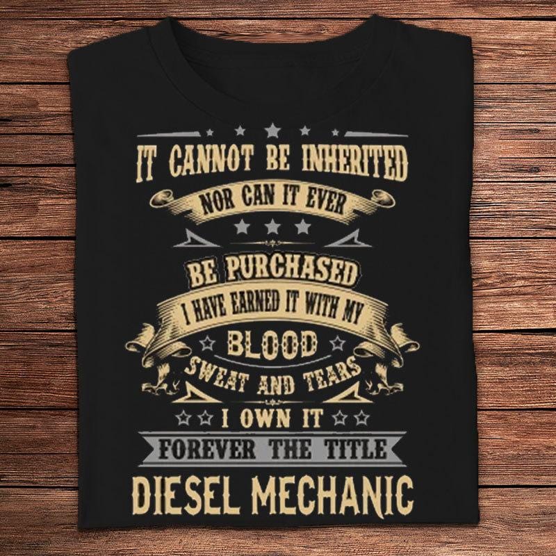 It Can Not Be Inherited Nor Can It Ever Be Purchased Diesel Mechanic Shirts