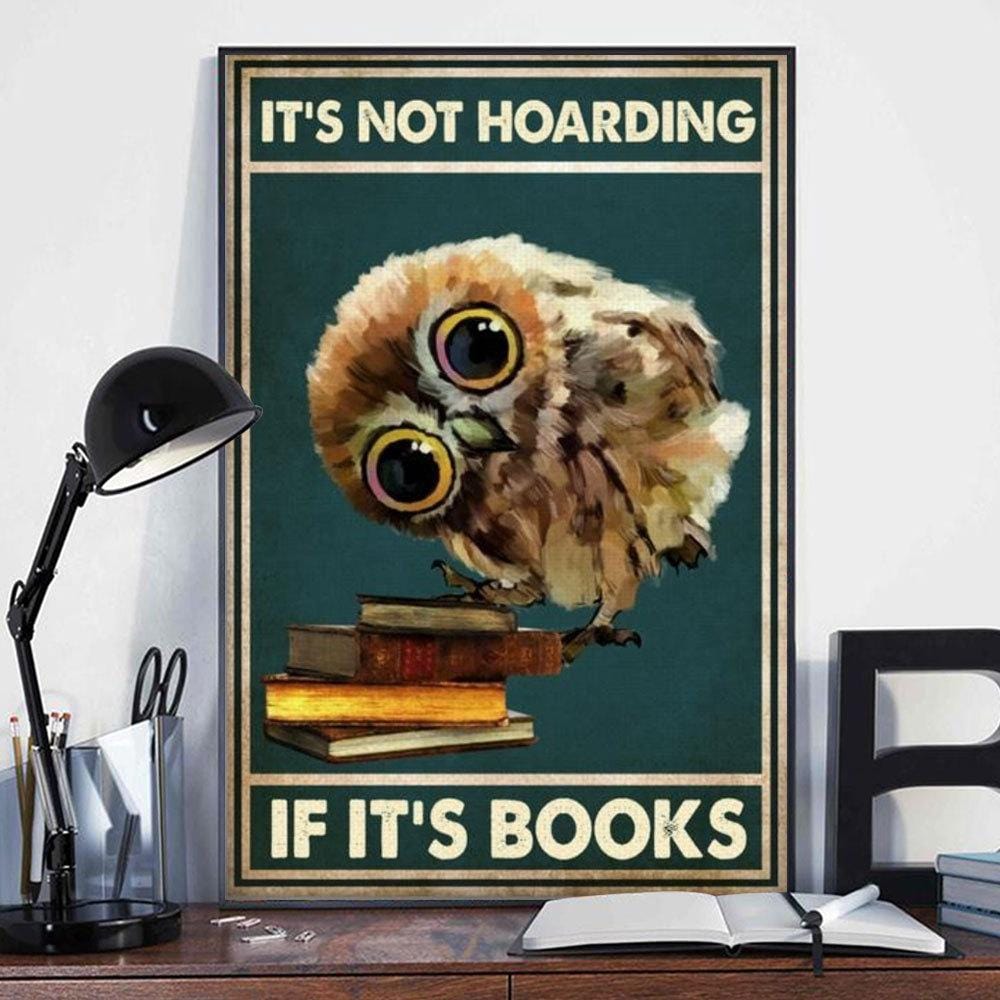 It's Not Hoarding If It's Books Owl Poster, Canvas