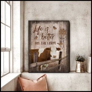Life Is Better On The Farm Hereford Cows Poster, Canvas