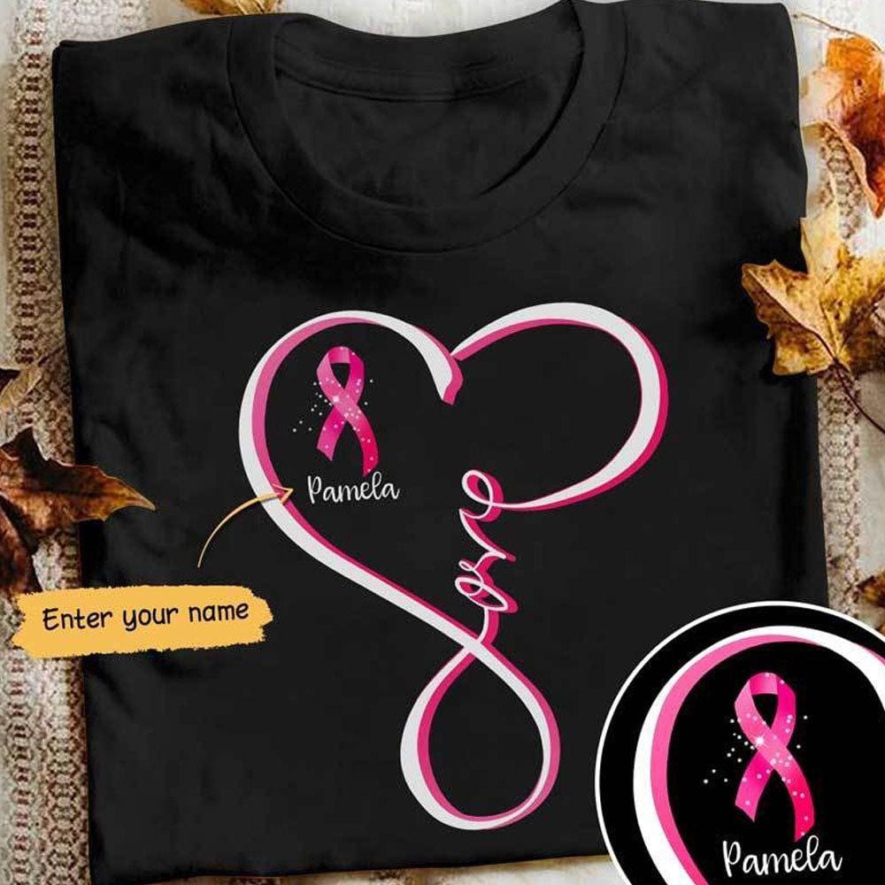Personalized Love With Pink Ribbon Heart, Personalized Breast Cancer Shirts