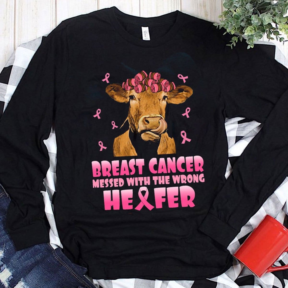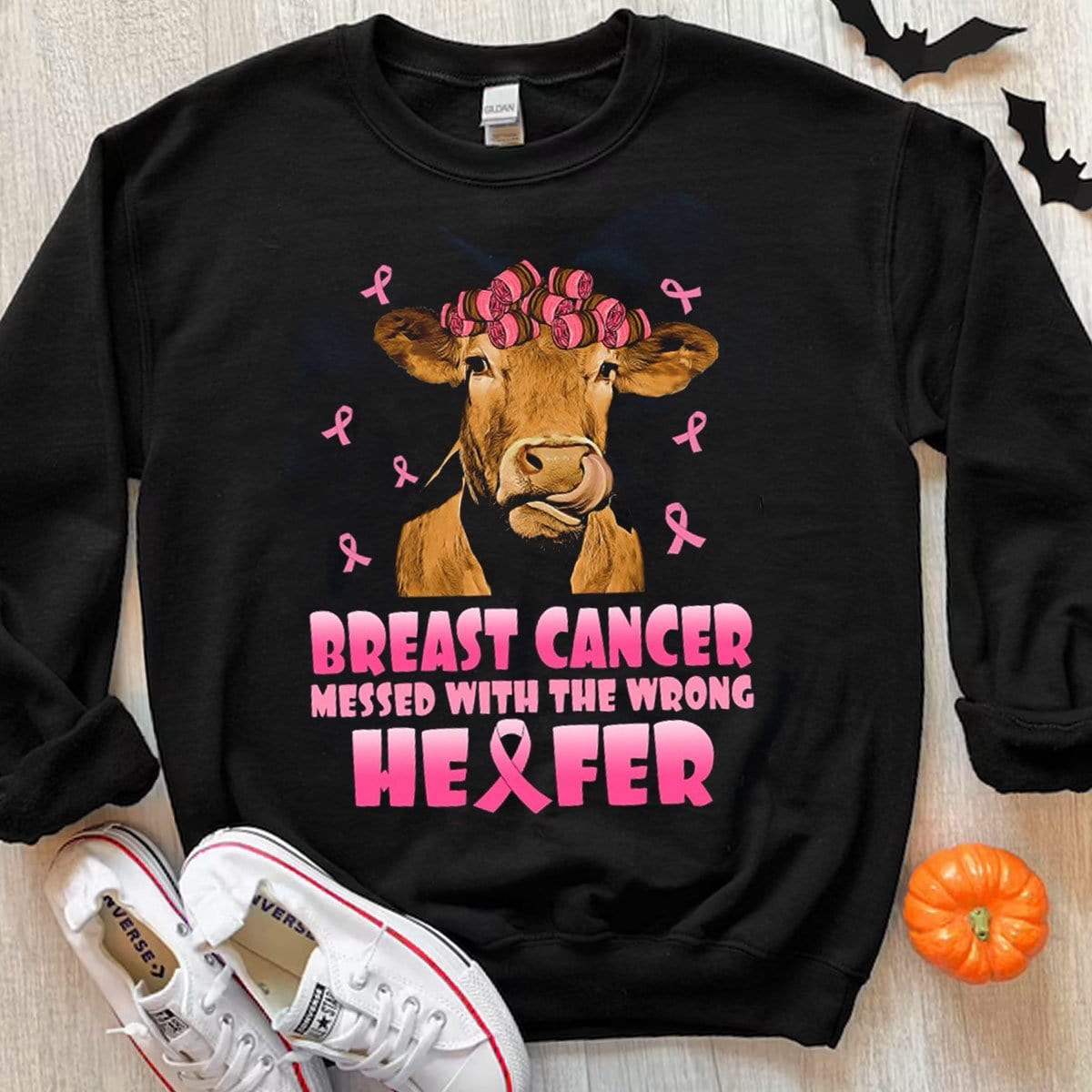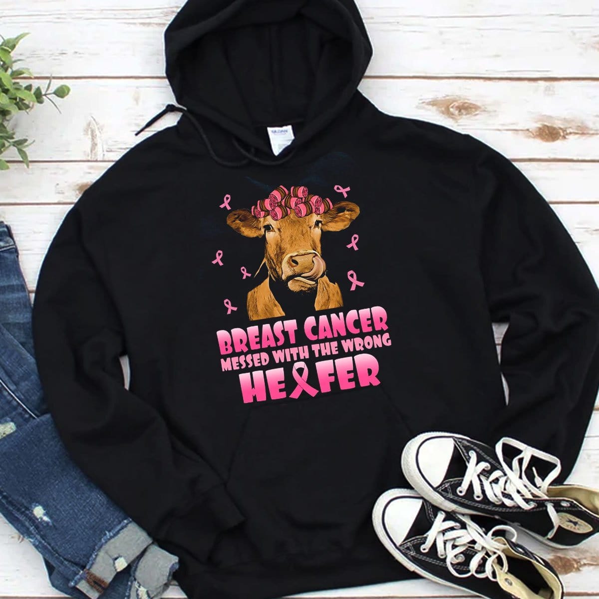 Messed With The Wrong Heifer Breast Cancer Cow Hoodie, Shirts