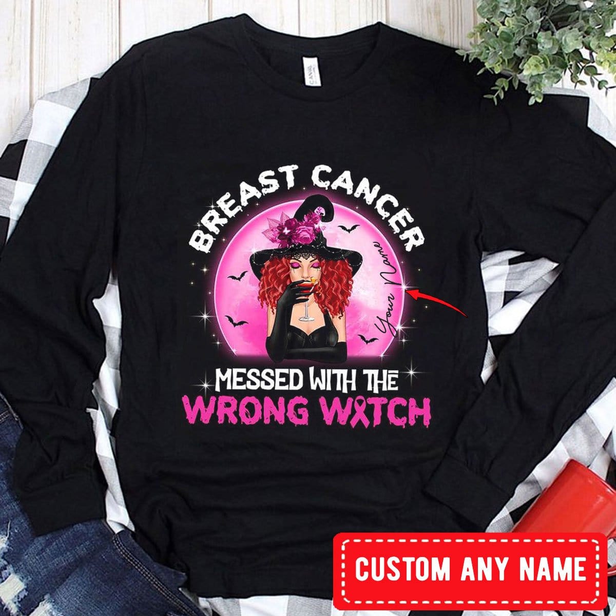 Messed With The Wrong Witch Personalized Halloween Breast Cancer Hoodie, Shirts