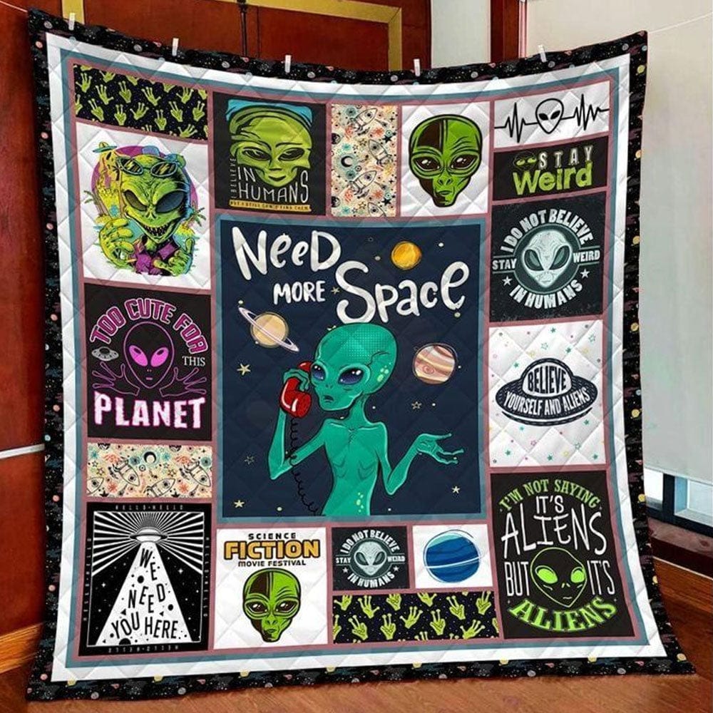 Need More Space Alien And UFO Pattern Fleece & Sherpa Blanket