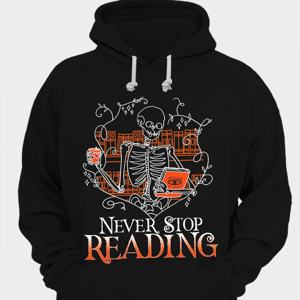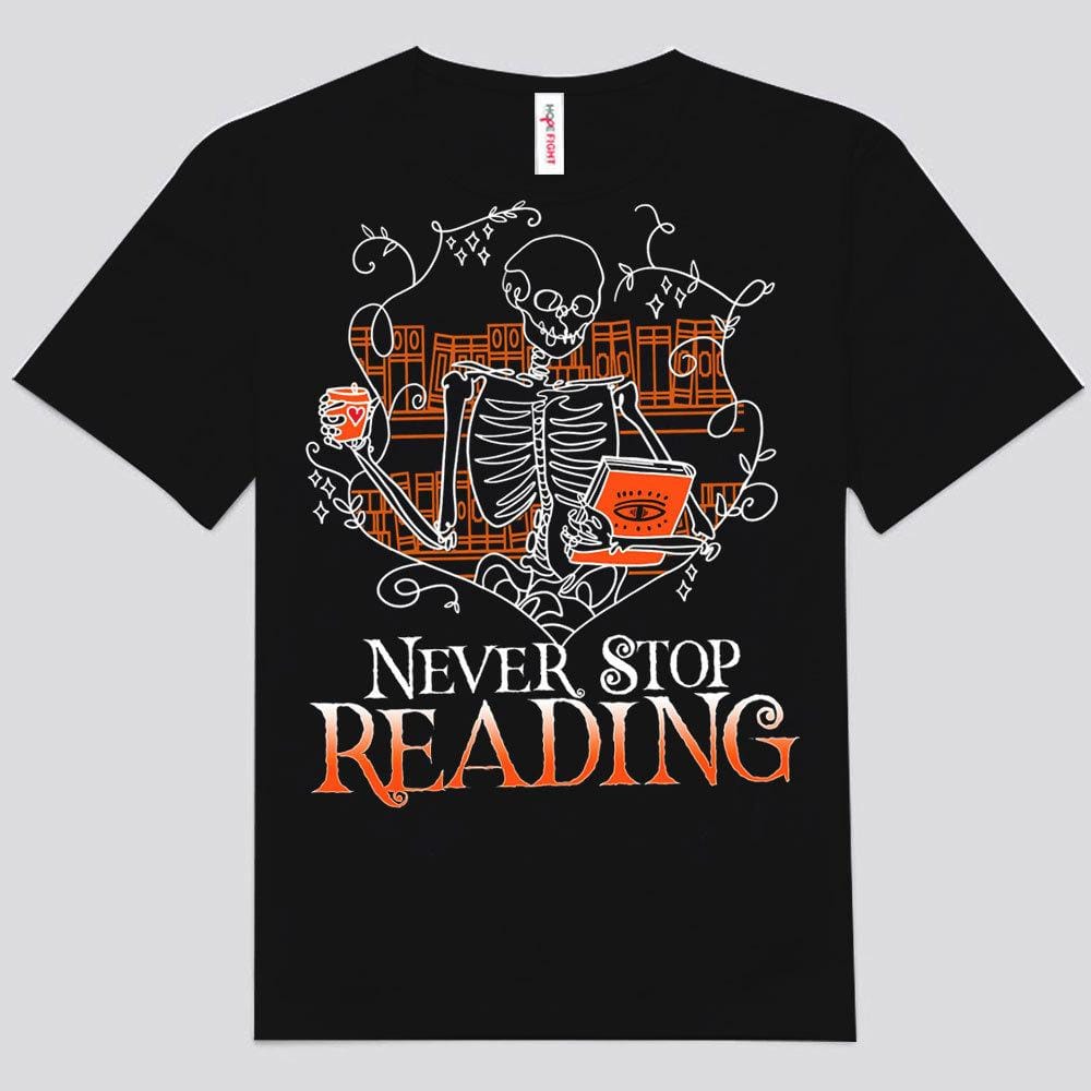 Never Stop Reading Funny Skeleton Book Shirts