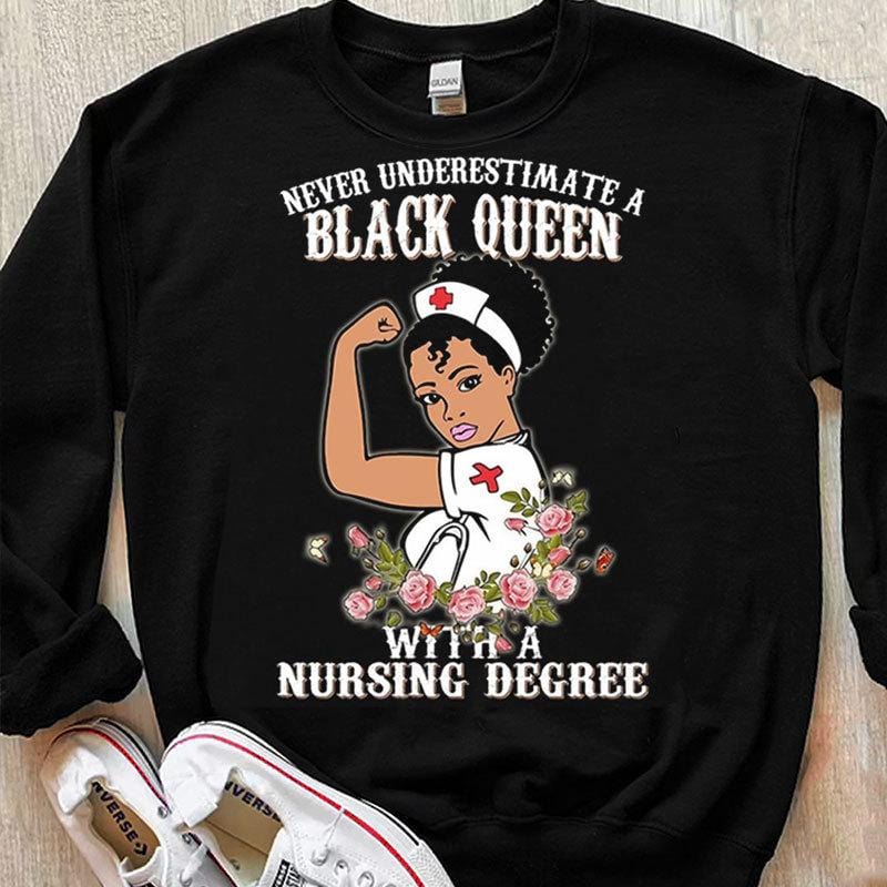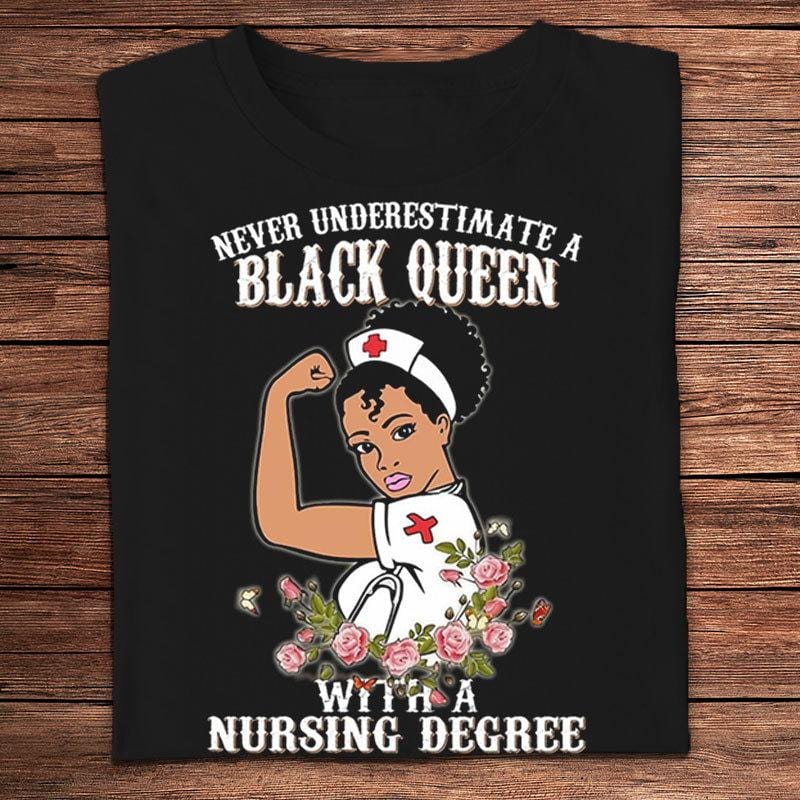 Never Underestimate A Black Queen With A Nursing Degree African American Shirts