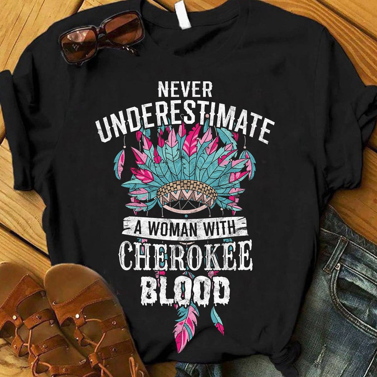 Never Underestimate A Woman With Cherokee Blood, Native American Shirts