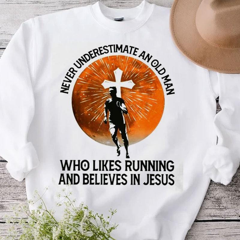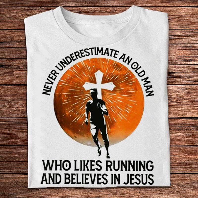 Never Underestimate An Old Man Who Likes Running & Believe In Jesus Shirts