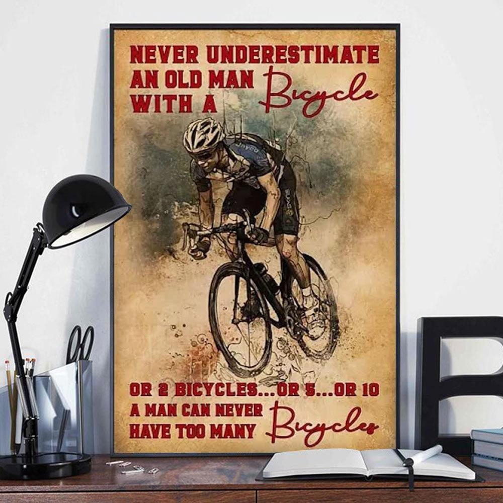Never Underestimate An Old Man With A Bicycle Biking Poster, Canvas