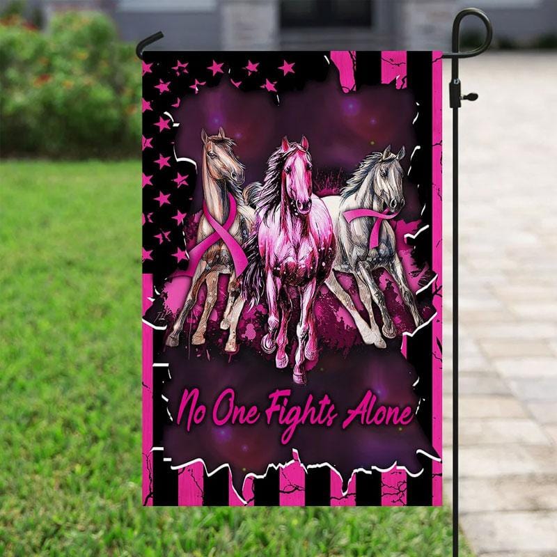No One Fights Alone, Pink Ribbon Horse, Breast Cancer Awareness Flag, House & Garden Flag