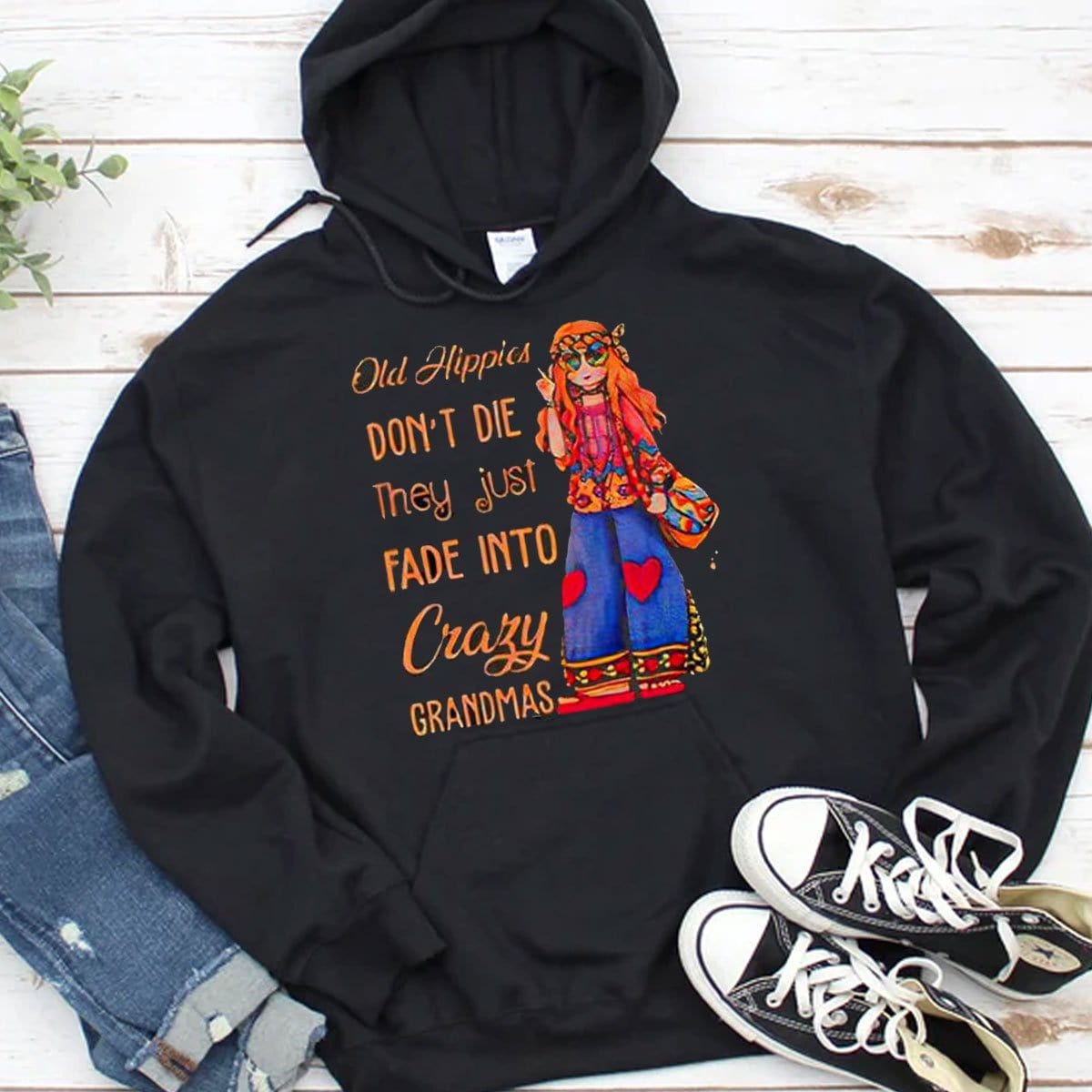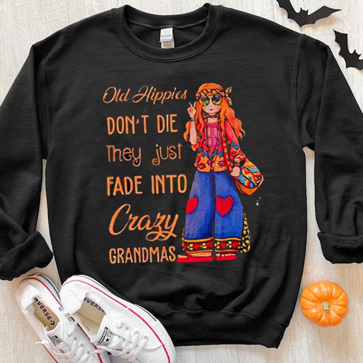 Old Hippies Don't Die They Just Fade Into Crazy Grandmas Hoodie, Shirts