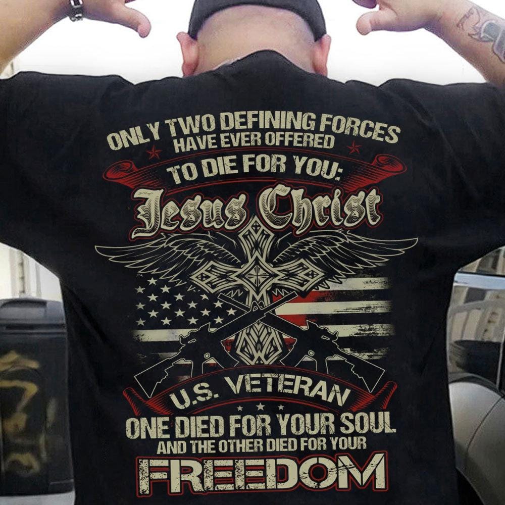 Only Two Defining Forces Have Offered To Die For You Jesus Christ & US Veteran Shirts