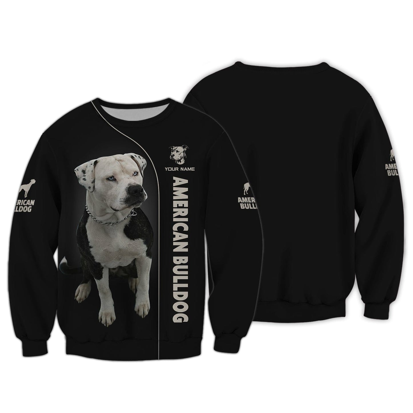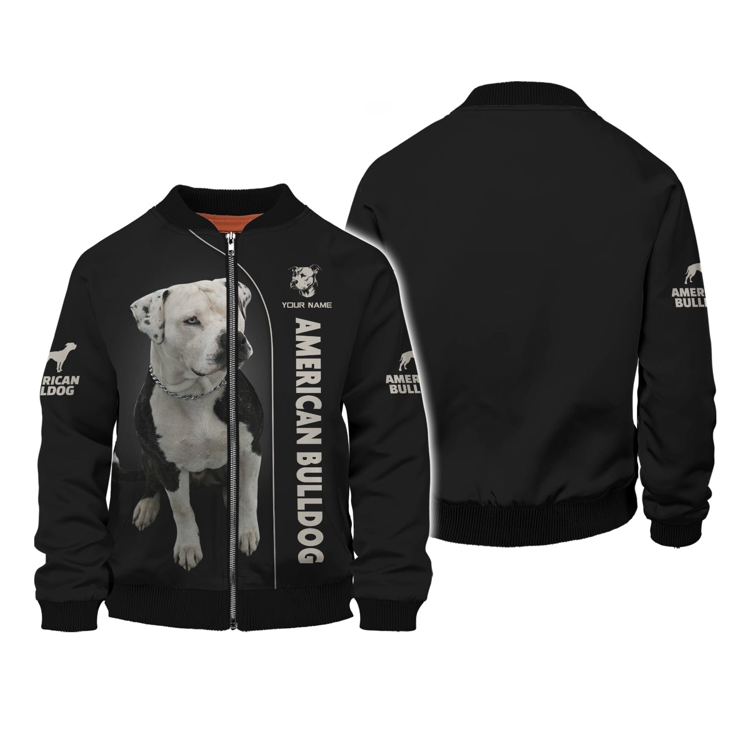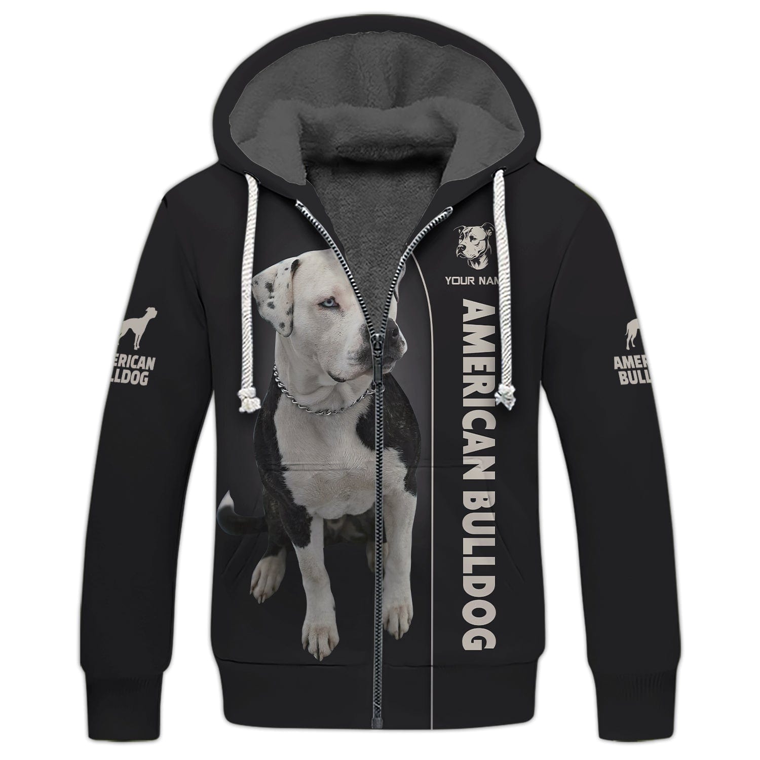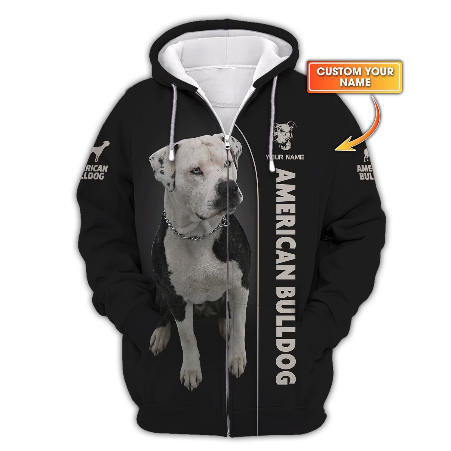 3D Full Print American Bulldog Zipper Hoodie Personalized Name Gift For Dog Lovers, All Over Printed