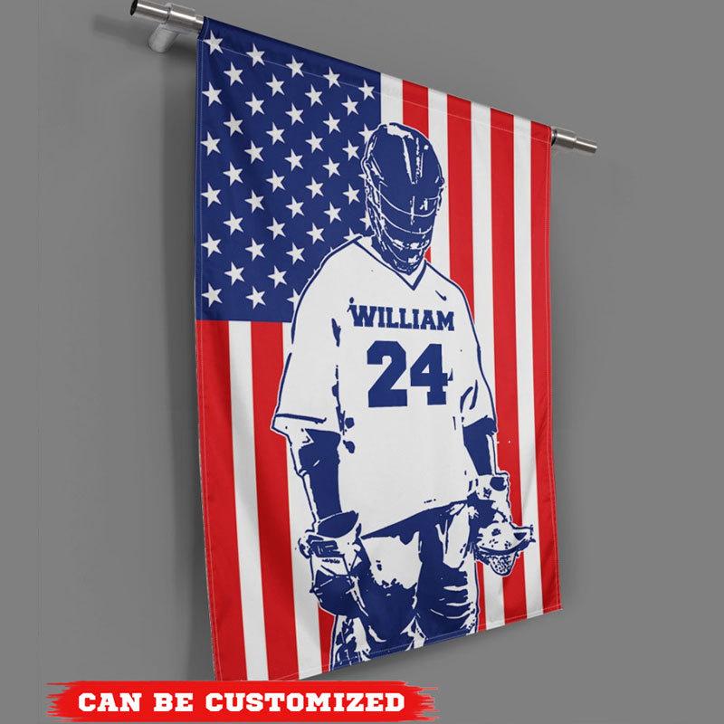 Personalized American Lacrosse House & Garden Flag