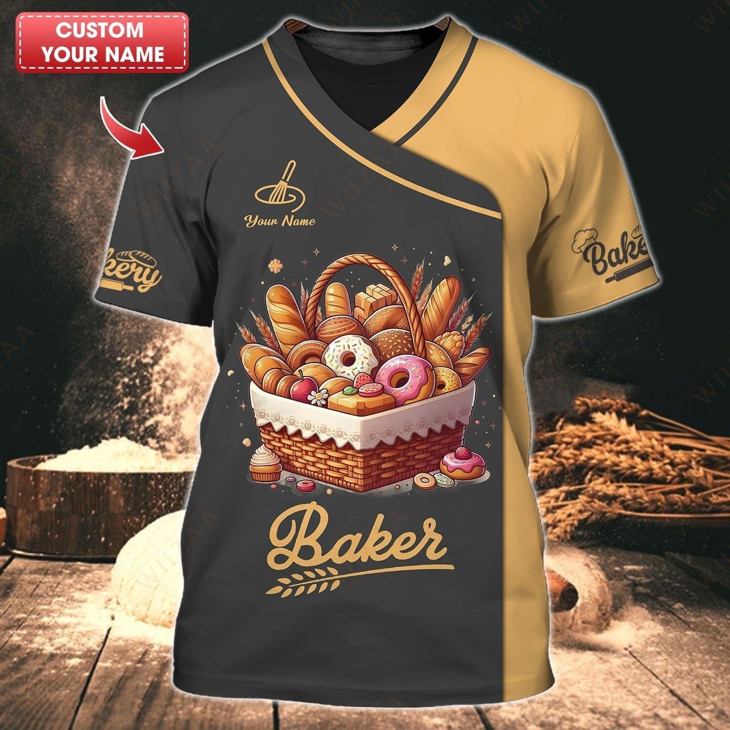 Personalized Baker Shirt - Artisan Pastry Collection with Golden Highlights