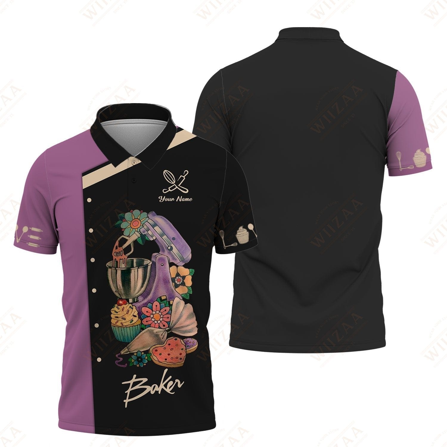 Personalized Baker Shirt - Bold Mixer & Pastry Graphics on Mauve Background