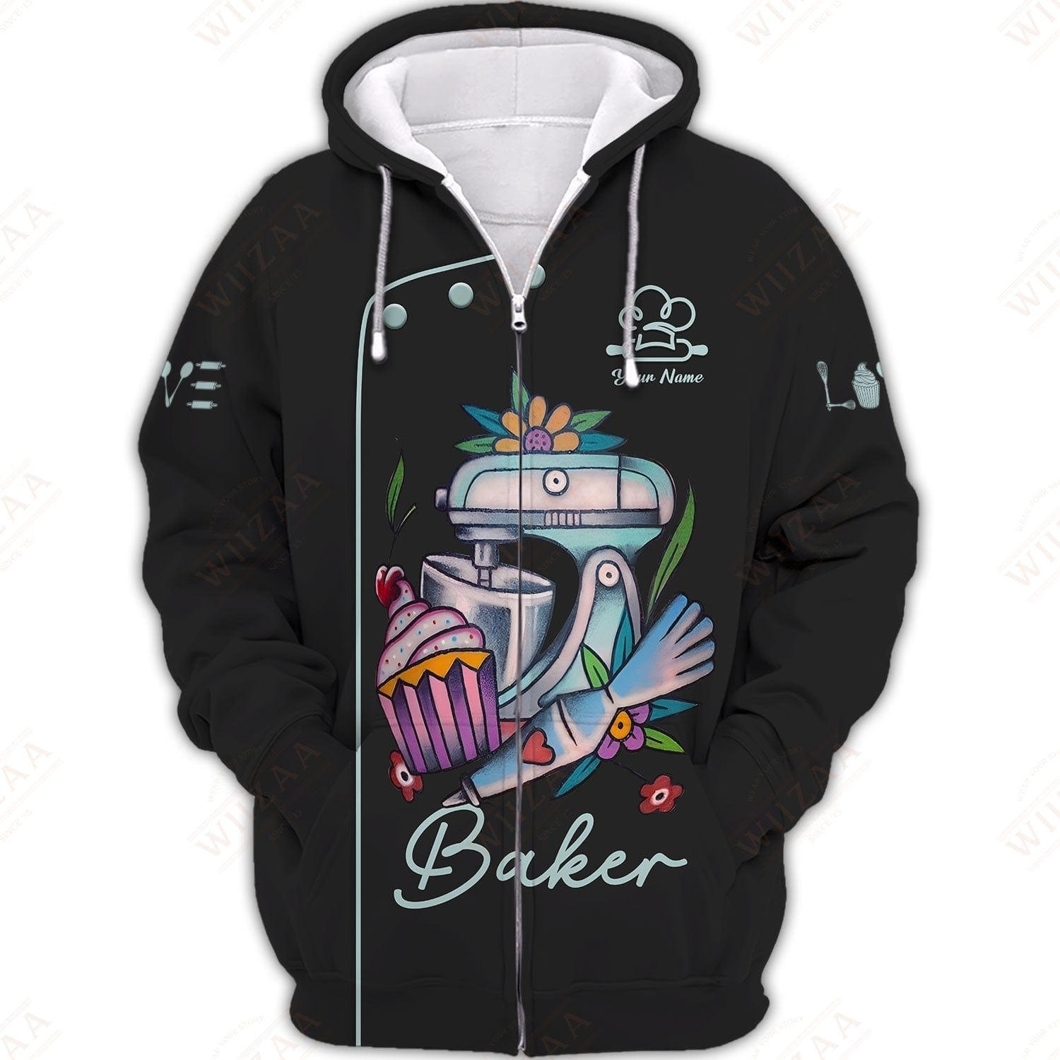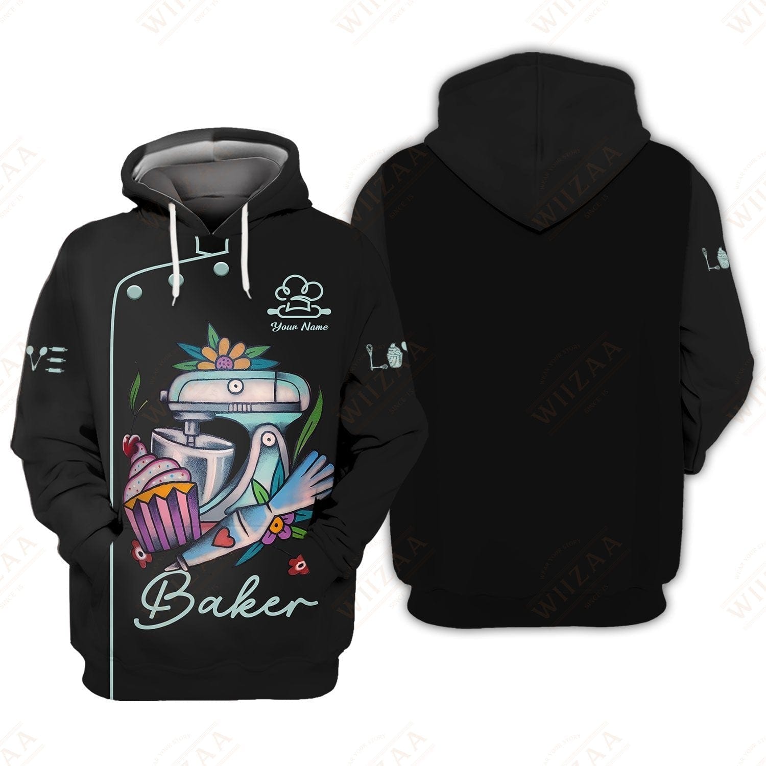 Personalized Baker Shirt - Playful Kitchen Mixer and Cupcake Artwork