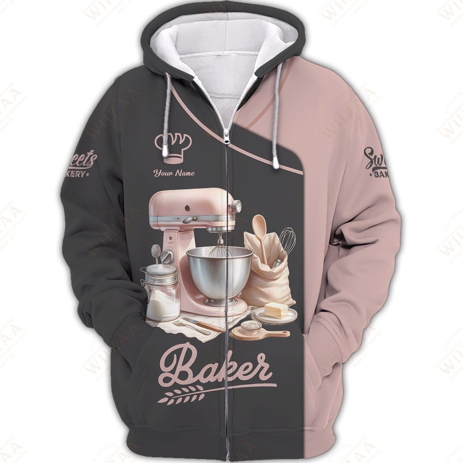 Personalized Baker Shirt - Traditional Mixer & Tools with Delicate Pastry Sleeve Accents