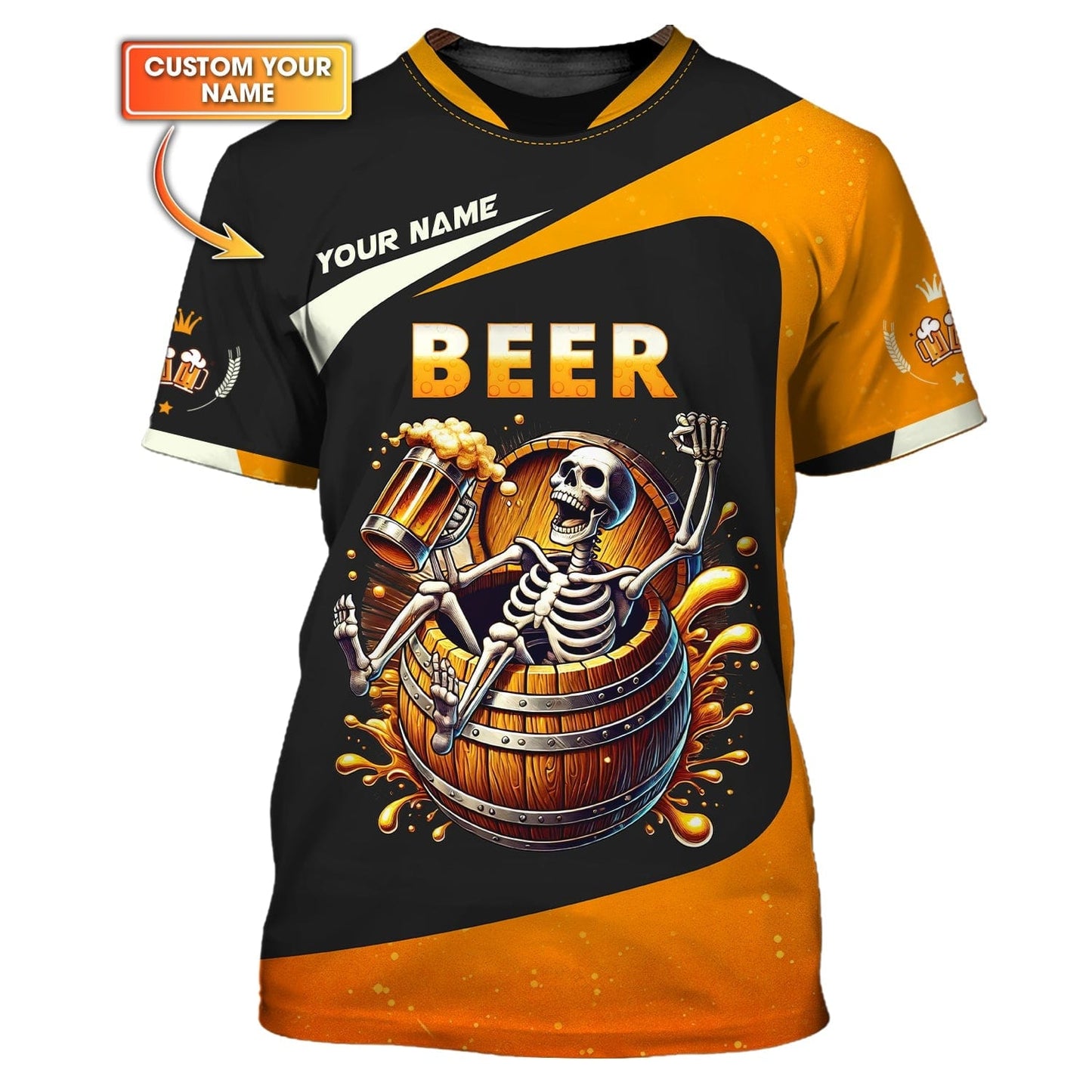 3D Full Print Beer Skull T-Shirts Personalized Name Gift For Beer Lovers, All Over Printed