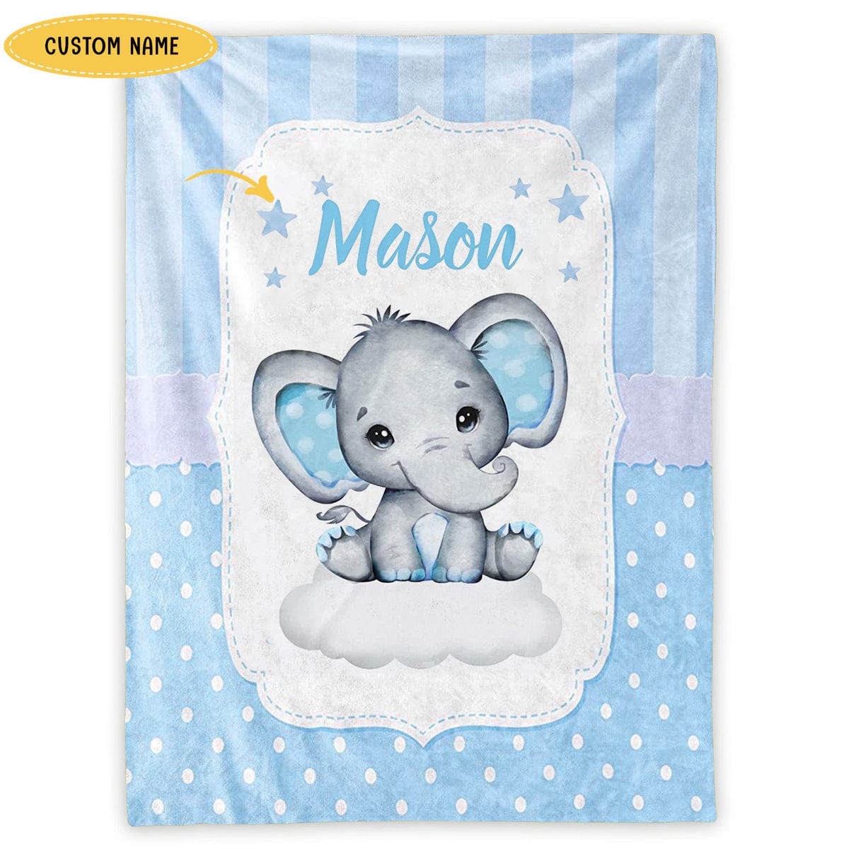 Personalized Blue Elephant Fleece & Sherpa Blanket