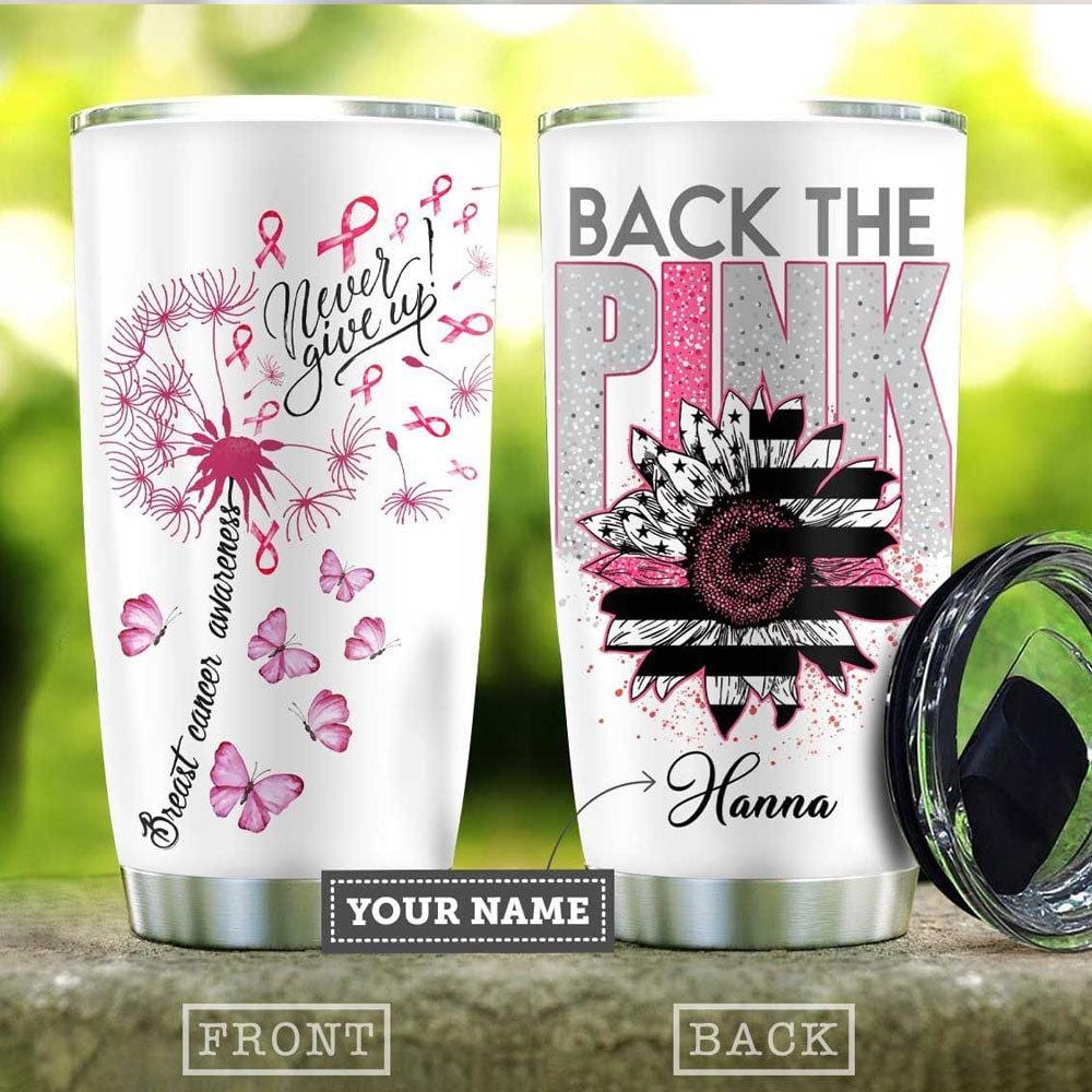 Personalized Breast Cancer Tumbler , Back The Pink Breast Cancer Awareness Tumbler