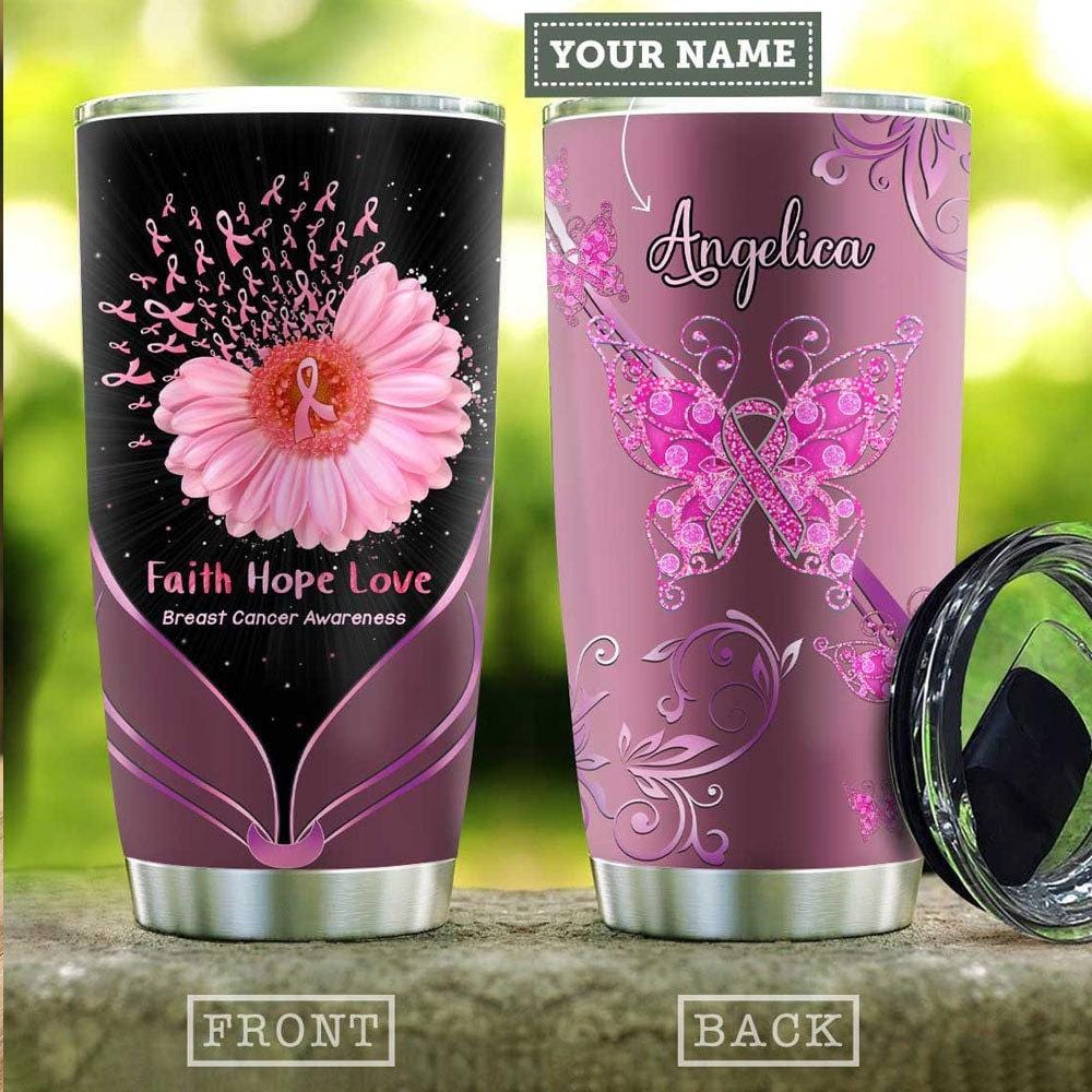 Personalized Breast Cancer Tumbler , Faith Hope Love Breast Cancer Awareness Tumbler