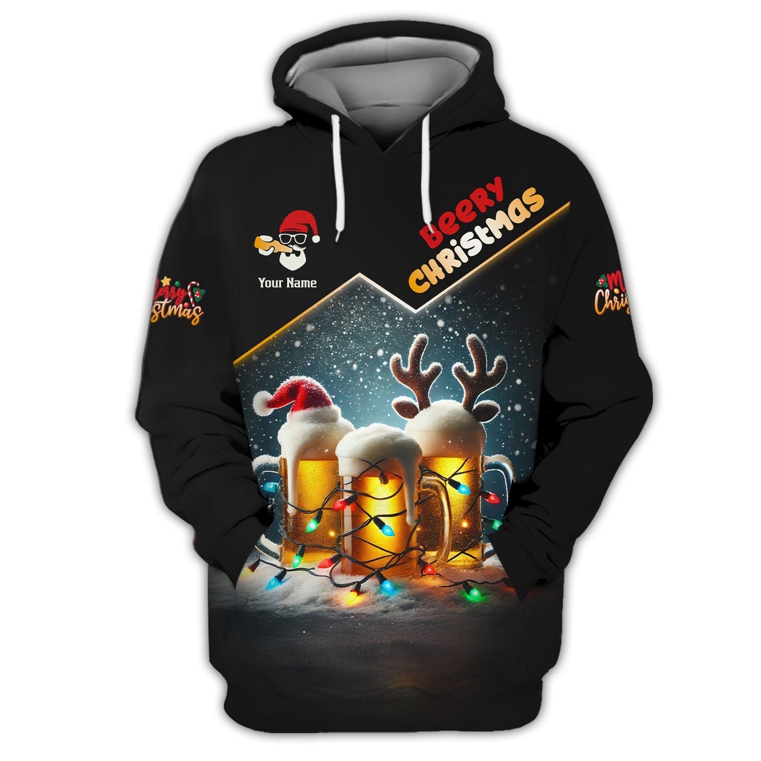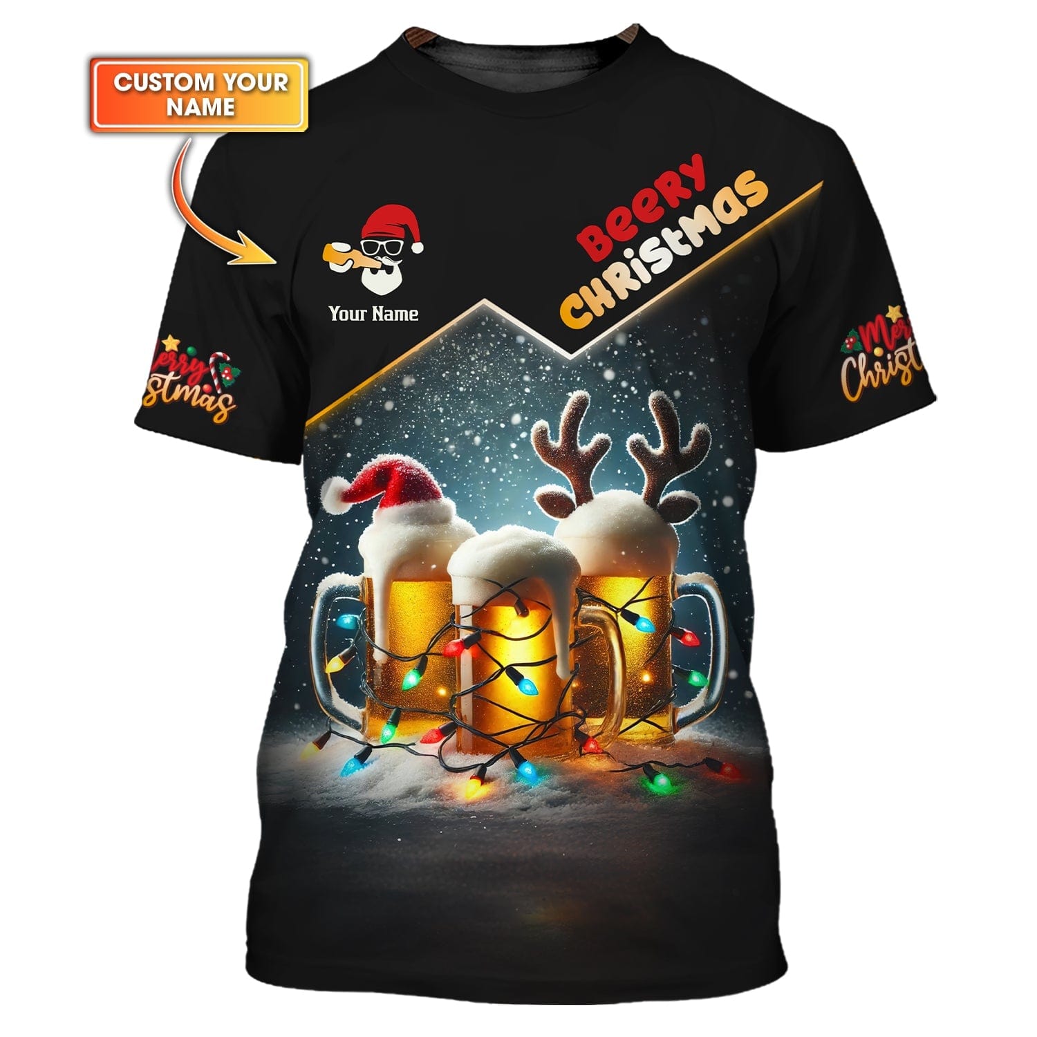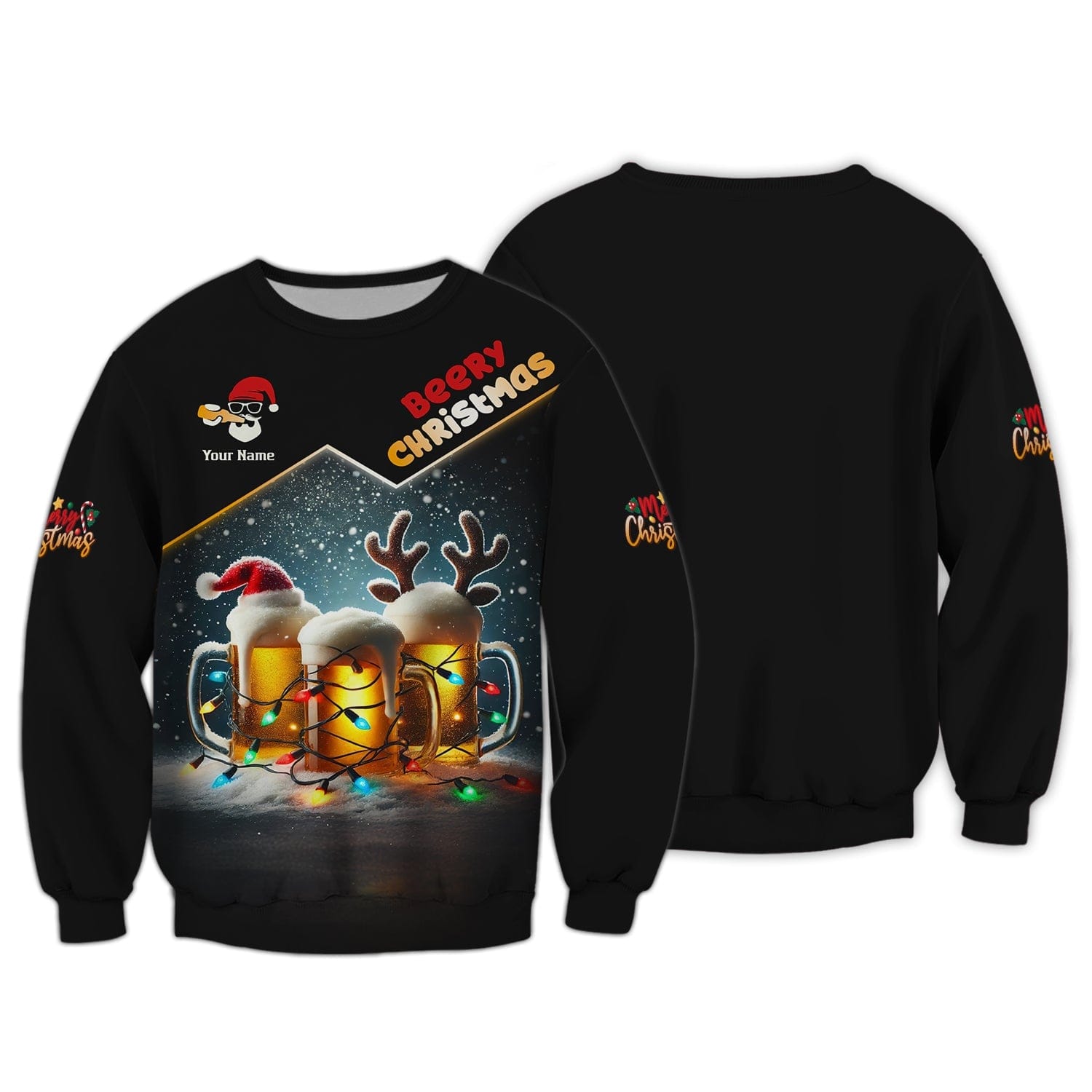 3D Full Print Beery Christmas Shirts Personalized Name Gift For Beer Lovers, All Over Printed